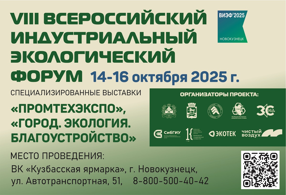 14-16 октября 2025VIII Всероссийский Индустриальный Экологический Форум Место проведения: ВК "Кузбасская ярмарка", г.Новокузнецк, Автотранспортная, 51 8-800-500-40-42 | |