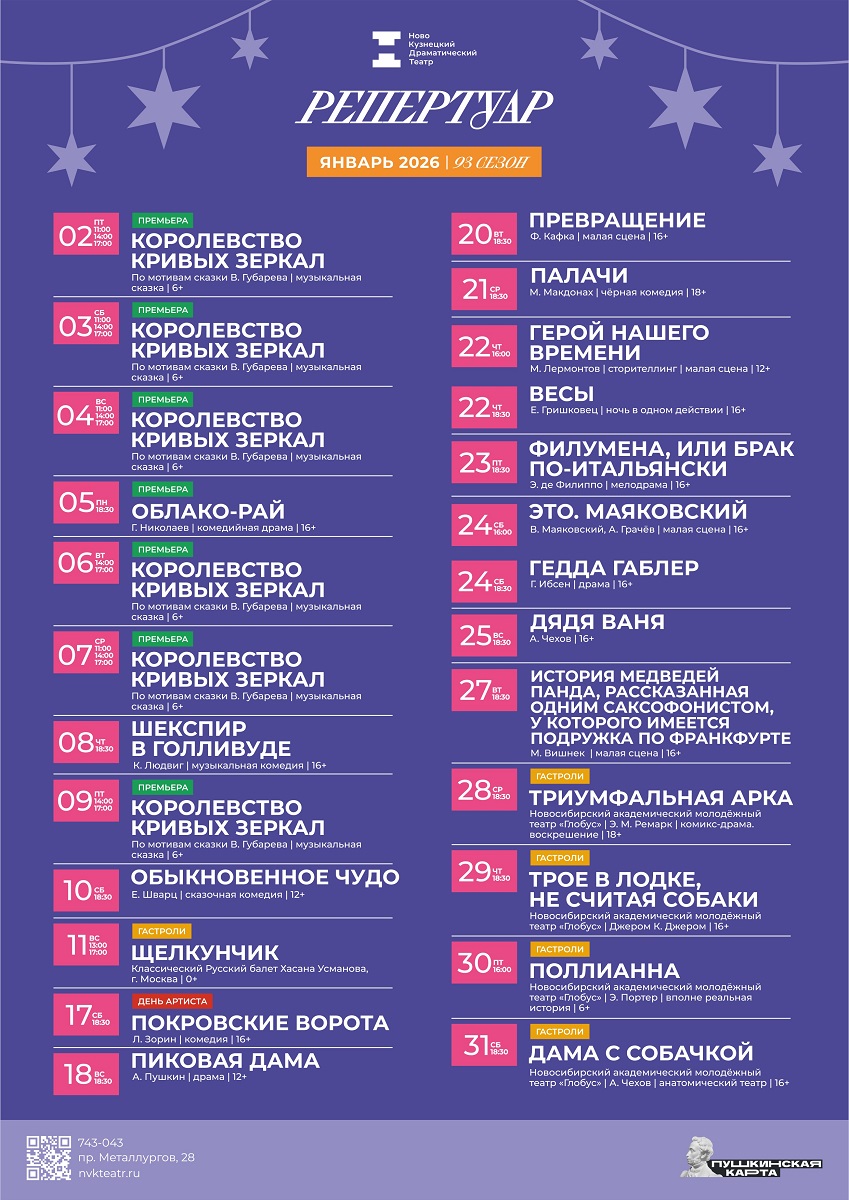 Главная » 2026 Январь 12 » Январь 2026 афиша Новокузнецкого драматического театра