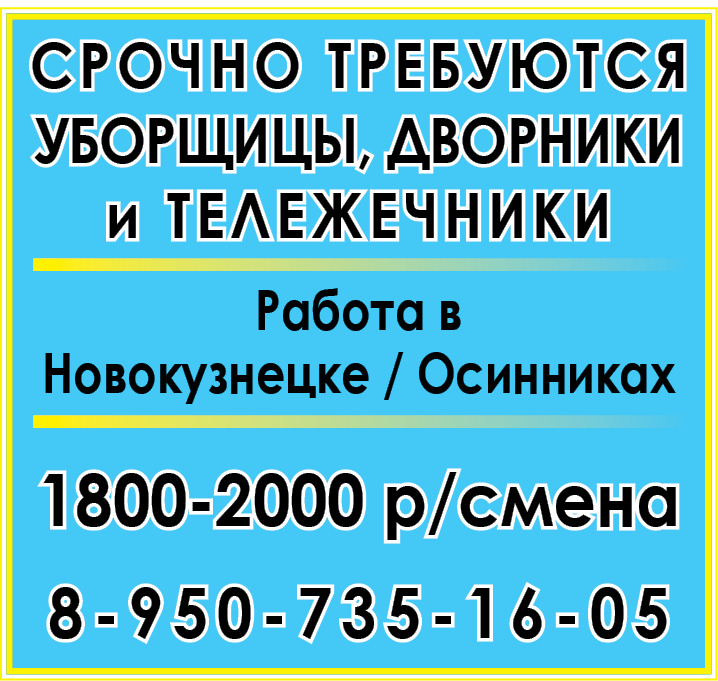 СРОЧНО ТРЕБУЮТСЯ УБОРЩИЦЫ, ДВОРНИКИ И ТЕЛЕЖЕЧНИКИ |